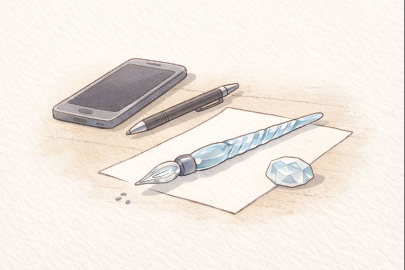 ガラスペンが嬉しくないと言われるいちばんの理由は、シンプルに自分の生活に入ってこないことです。普段のメモはスマホ、仕事はシャーペンかボールペン、みたいな人にとって、ガラスペンは「綺麗だけど出番がない置物」になりがちなんですよね。ここ、めっちゃ分かります。だって、日常の筆記って基本は“早く・楽に・失敗なく”が正義だから。