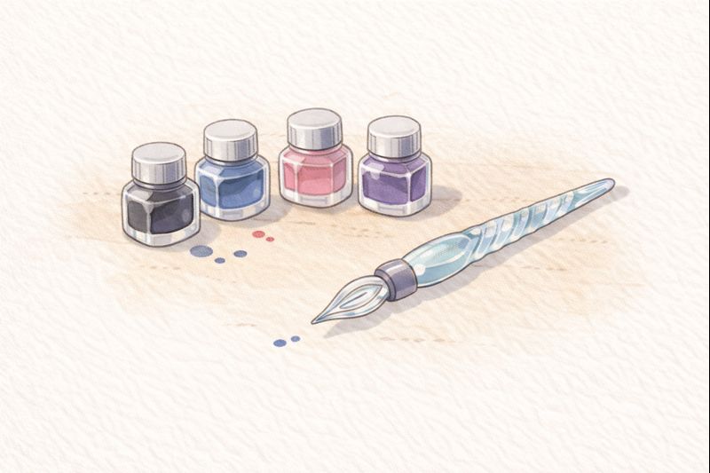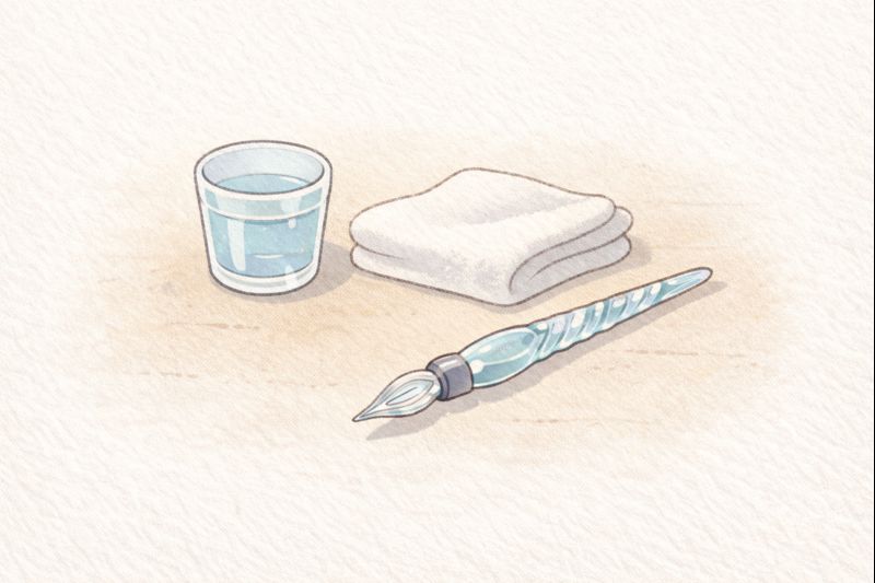 もしあなたが“もらった側”なら、できることはあります。いきなり完璧にハマらなくていいので、まずは「紙だけ良いものにする」「インクは見やすい色にする」「洗う容器と布を定位置に置く」。この3つだけでも、ガラスペンの体験はだいぶ変わります。最初の10分が快適になれば、ガラスペンは趣味として育ちます。