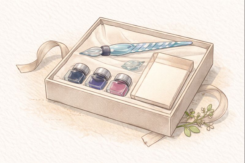もしどうしてもガラスペンにしたいなら、せめて「ミニインク」「ペン置き」「万年筆向け紙」を一緒に入れて、受け取った人がその場で書ける状態を作ってあげてください。これだけで、ガラスペンの評価はかなり変わりますよ。