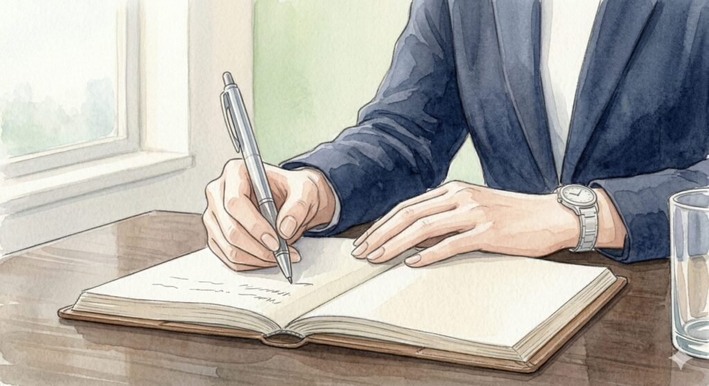 この細やかな配慮こそが、ビジネスパーソンの所作を美しく見せてくれるんですよ。適度な金属の重みが筆記を安定させ、なめらかなインクと相まって、極上の書き心地を提供してくれます。
