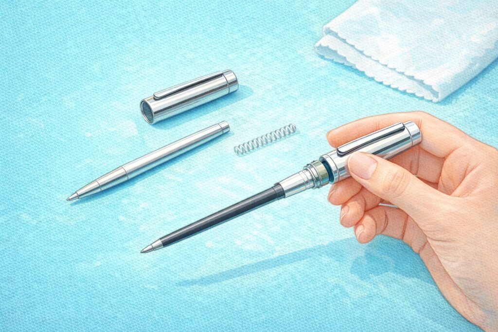 私のやり方としては、まず純正で一回回して基準を作る。その上で、互換を試すなら「戻れる状態」で試す、です。高級ペンは、安心感も含めての買い物ですからね。