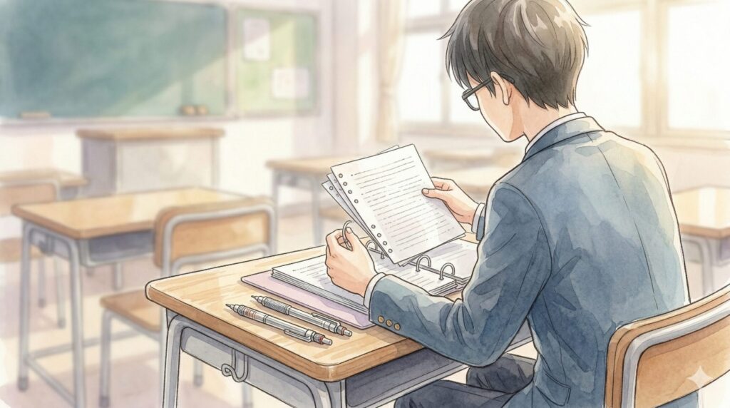 高校生になると、中学校の頃とは比べ物にならないくらい、授業ごとに配られる補助プリントや板書の量がドッと増えますよね。これらをどうやって整理して、テスト前にすぐ引き出せるようにするかが、成績アップの明暗を大きく分けます。ノートの使い方は、まさに情報管理の要なんです。